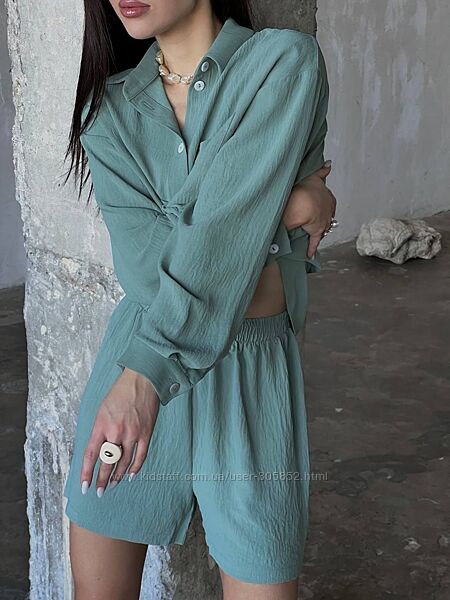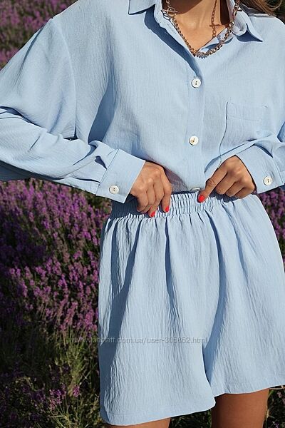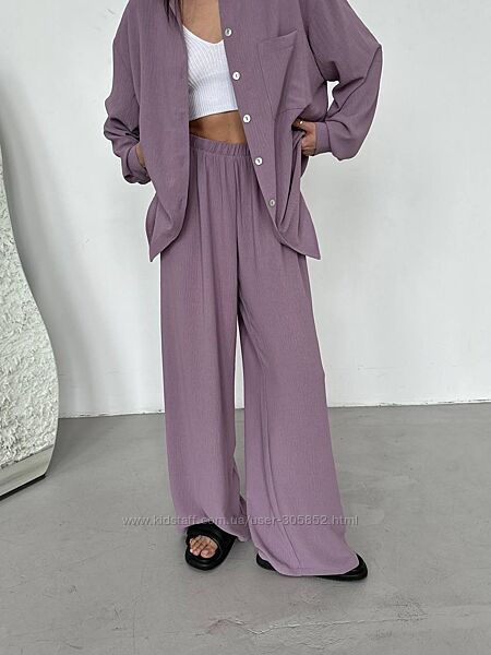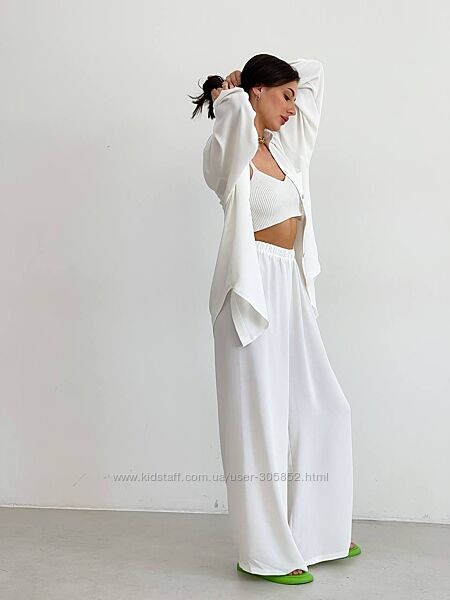 Подробное описание: Костюми з креп-жатки сорочка палаццо/шорти one size