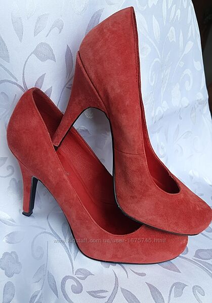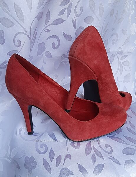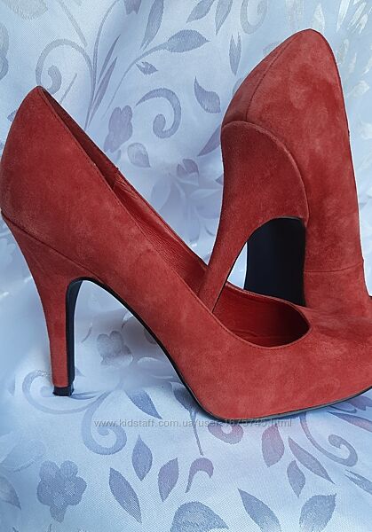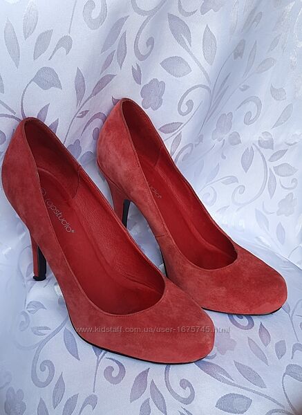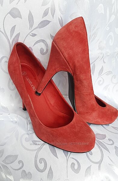 Туфли женские Topstudio из натуральной замши.Нарядные красно-коралловые туфли - одевались всего один раз,