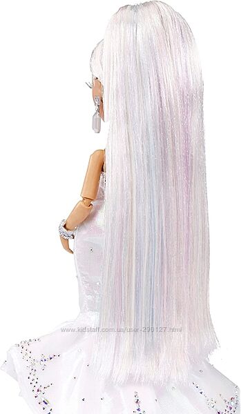RAINBOW HIGH СВЯТКУЄ СВЯТА: наша колекційна лялька Роксі Гранд готова зустріти свято в діамантах та блиску. Вона одягнена в райдужну сукню з органзи, прикрашену 683 стразами, аксесуари з діамантами та блискучі туфлі. Чудовий подарунок для дітей та колекціонерів.РУХОВА ПІДСТАВКА: Roxie Grand має бездоганний стиль. Вона постачається з рухомою підставкою, яку можна пересунути зліва направо, що ідеально підходить для будь-якої камери.СТИЛЬ ШОУСТОППЕР: У школі Rainbow High вона є королевою стилю на прізвисько «Бос». Вона моделює сукні для великого виступу Rainbow Divas Rainbow Vision, і вона приносить свою гру! Вона одягнена в розкішну сукню-русалку з вишитими 683 стразами вздовж верхньої та нижньої оборок сукні, діамантові підбори, шість браслетів із діамантами, пару скульптурних сережок і яскраве намисто з дорогоцінних каменів.