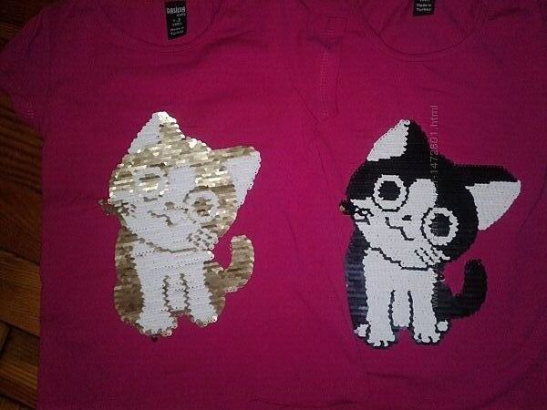 Супер стильная футболка пайетки-перевертыш для девочки 1-8лет, Турция.
