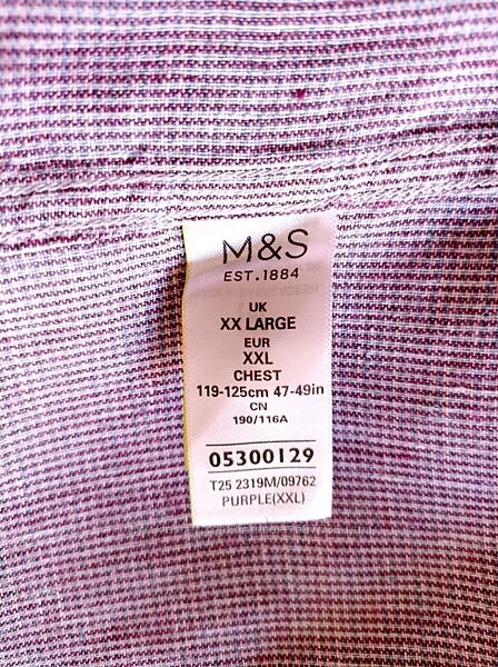 Мужская рубашка с коротким рукавом из льна известного английского бренда Marks & Spencer®. Размер указан XXL наш -54 размер (замеры см. ниже). Очень красивая, качественная, эксклюзивная . Модель Regular Fit с воротником Kent. Цвет указан Purple - пурпурно-белая звездочка. Низ слегка полукруглый. На груди карман с левой стороны. Материал Pure Linen - 100% - чистый лен высочайшего качества, очень легкий, тонкий «не парит». Цвет пуговиц белый. Отличный вариант на жару для повседневной носки. Состояние- новая, без бирки, Сток. Производство Бангладеш. Отвечу на Ваши вопросы. Замеры: ширина в плечах –52,5см. ширина по спине (от подмышки до подмышки )- 69 см. ширина по талии 67,5см, ширина по низу 69см, Длина рукава по внешнему шву- 27 см. Длина рукава по внутр.шву- 11 см. Общая длина рубашки –78 см. Ворот 46-47см.