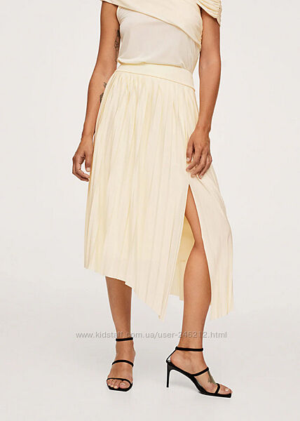 Ванильная юбочка Mango плиссе из последней коллекции !Ассиметричный низ, сбоку разрез , высокая талия