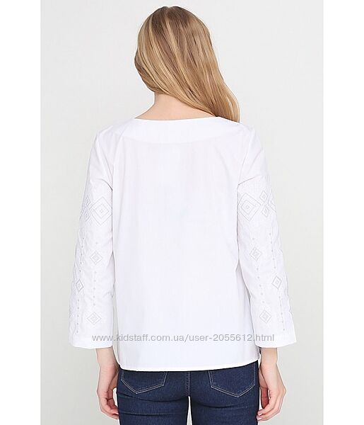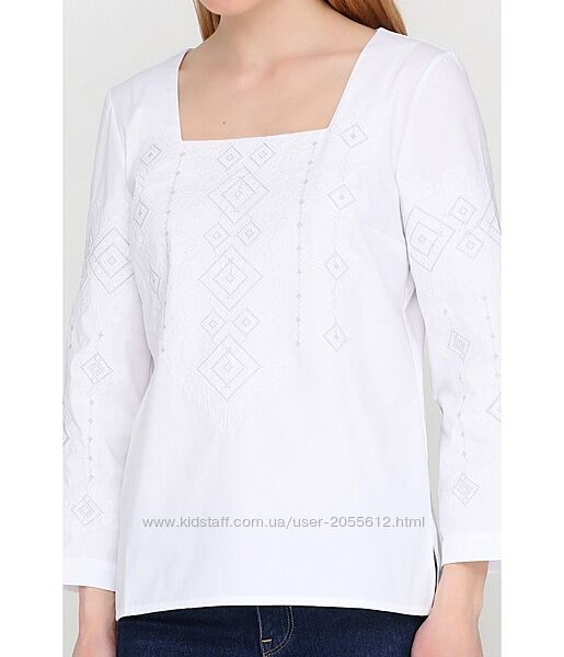 Ніжна вишиванка з рукавом три чверті, прямокутним вирізом, прикрашена вишивкою білого або сірого кольорів.Розмір футболки: