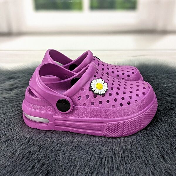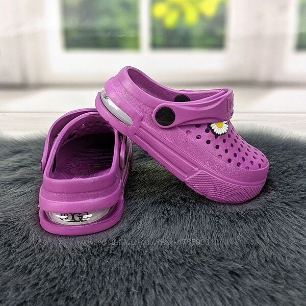 Кроксы сабо детские для девочки с балоном Dago Style р-р 25-30 Очень красивые и нарядные сабо кроксы для девочки отличного качества, от Украинского производителя Dago Style. Материал пена ЭВА. Отлично носятся, легко моются. Новая модель вышла с воздушным балоном на пяточке, что очень стильно смотрятся. Подойдут для прогулок, на море, в бассейн, да и вообще на все случаи жизни.Для выбора своего размера, смотрите размерную сетку на данную модель: (замеры внутри, от края до края)