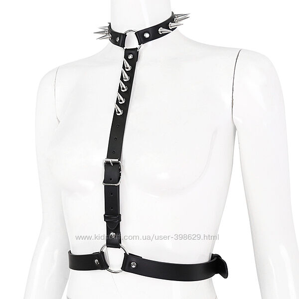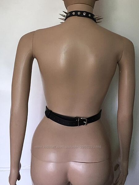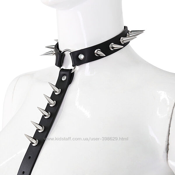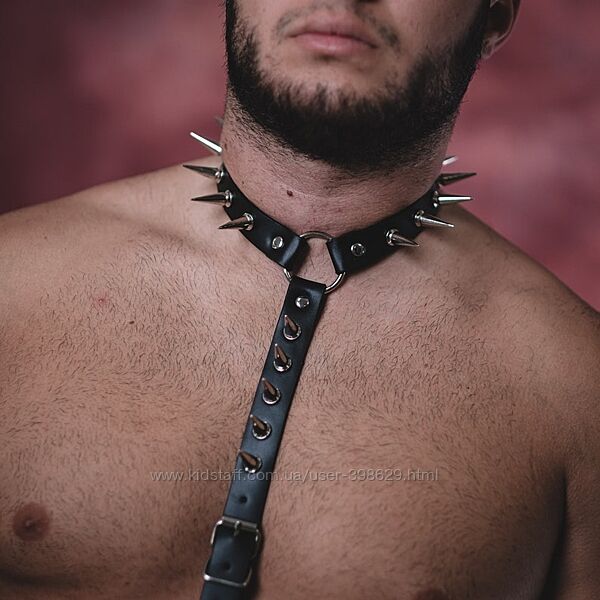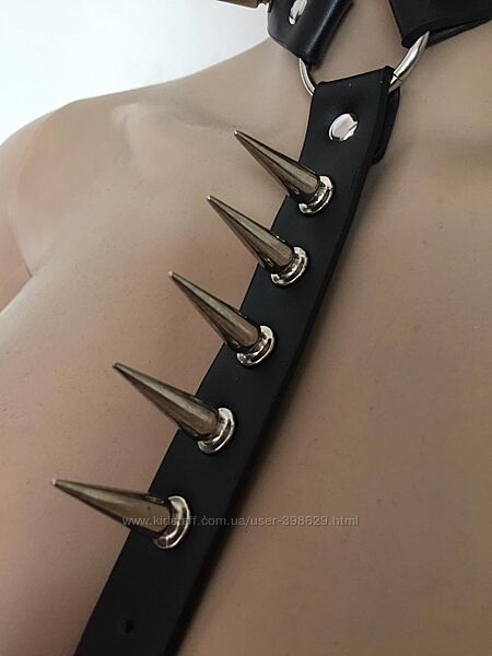Оригинальный аксессуар для любителей БДСМ-игр, декорированный металлическими шипами. Имеет возможность регулировки размера с помощью ремешков и заклепок. Материал в меру мягкий и эластичный. Идеально сочетается с кожанными масками, наручниками и чокерами.