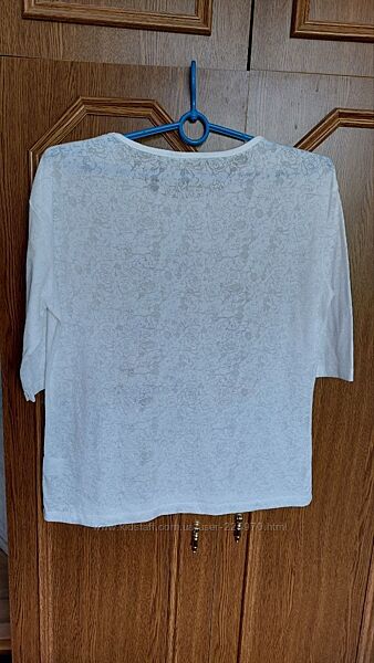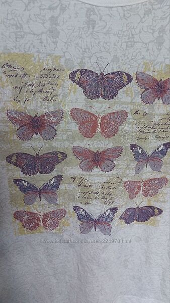 Невагома блузка з метеликамиЛітня блузка, абсолютно невагома і приємна до тіла. Дуже красива тканина, типу ажурної в трояндочку. На тілі практично не відчувається. Рукав 3/4