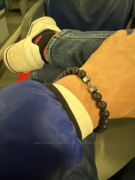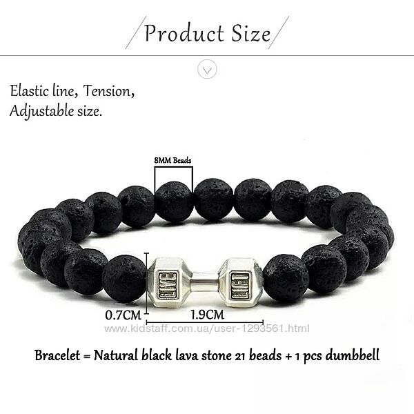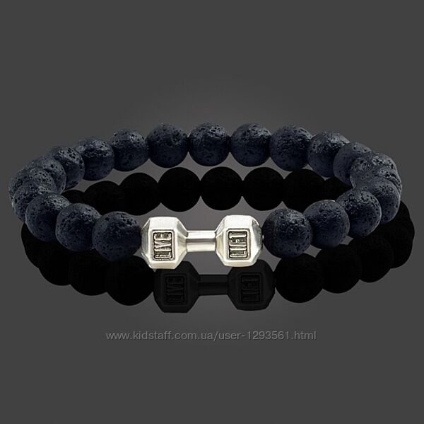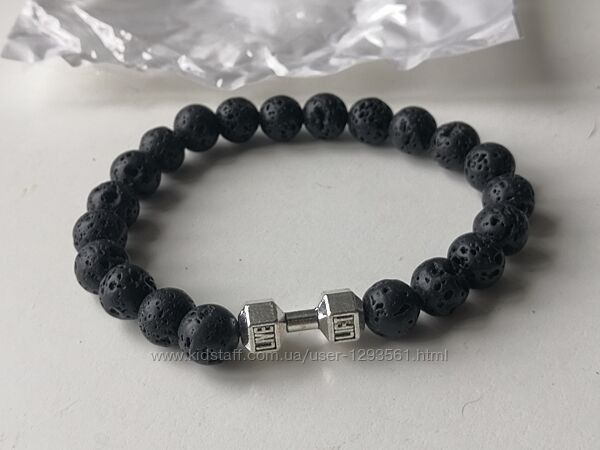 Черный браслет из натурального камня мужской женский вулканическая лава