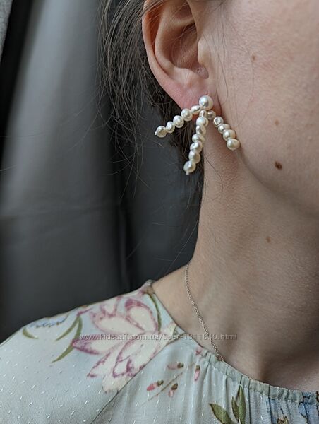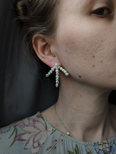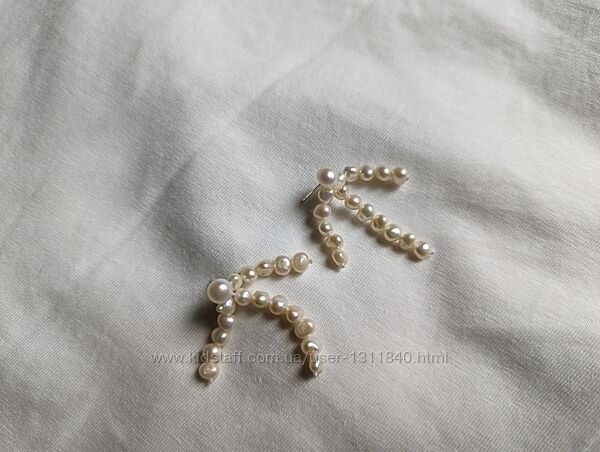 Подробное описание: Сережки з натуральними прісноводними перлинами, срібні сережки з перлинами