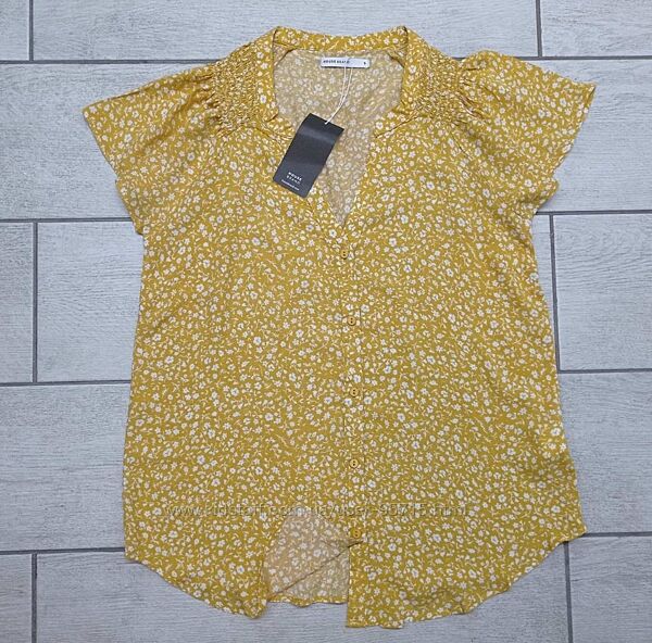 Легкая блузка из вискози. Короткий рукав. Застегивается на пуговицы.