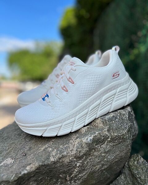 🌿Skechers. США. ОригіналБазові молочні комфортні технологічні кросівки SKECHERS BOBS SPORT B FLEX HI - PARALLEL FORCE