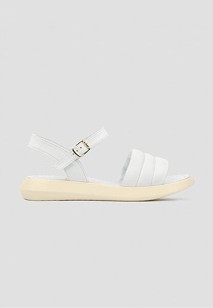 Белые кожаные стильные удобные качественные босоножки на низком ходу, бежевой подошве.