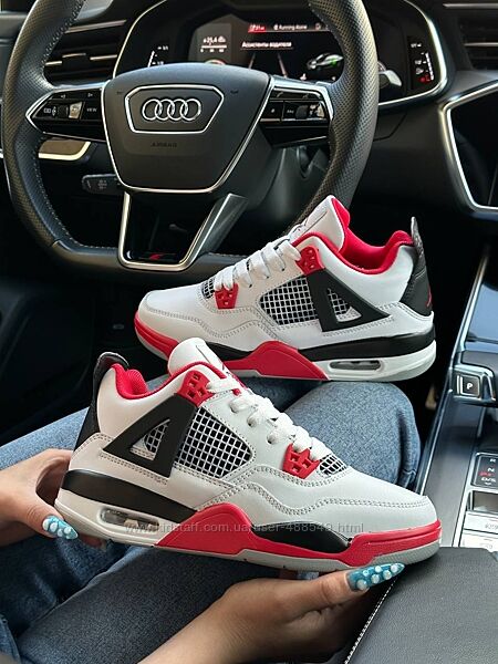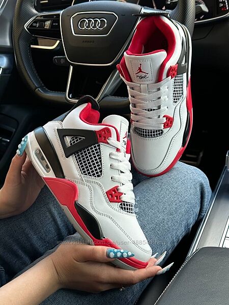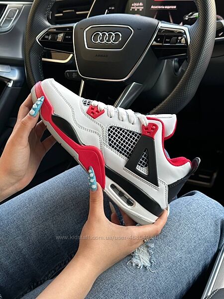 Подробное описание: Кросівки підліткові Nike Air Jordan 4 білі з червоним