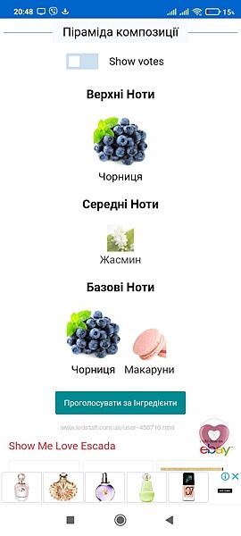 Розпив аромату -24 грн/млShow Me Love від Escada - це парфум для жінок, належить до групи ароматів Квіткові Фруктові Гурманські. Це новий аромат. Show Me Love був випущений в 2022. Парфумер: Alexandra Carlin. Верхня нота: Чорниця; нота серця: Жасмин; ноти бази: Чорниця і Макаруни.Тара