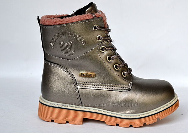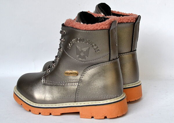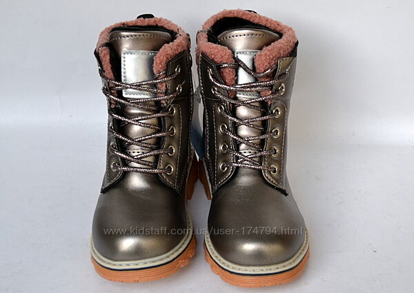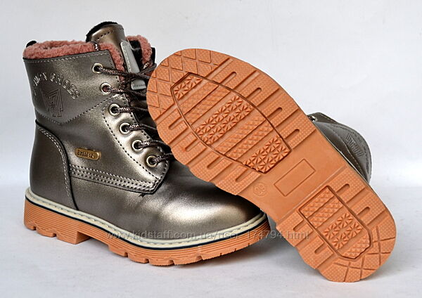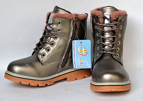 Зимние сапожки для девочки BBT. Верх - заменитель кожи. Внутренняя часть утеплена густым полу-шерстяным мехом. Фиксируются на ножке с помощью боковой молнии. При необходимости можно использовать шнурки. Высокая подошва прошитая по периметру, с рельефным узором обеспечит защиту от мороза и скольжения. Очень аккуратно смотрятся на ножке.27р по стельке 16,5см