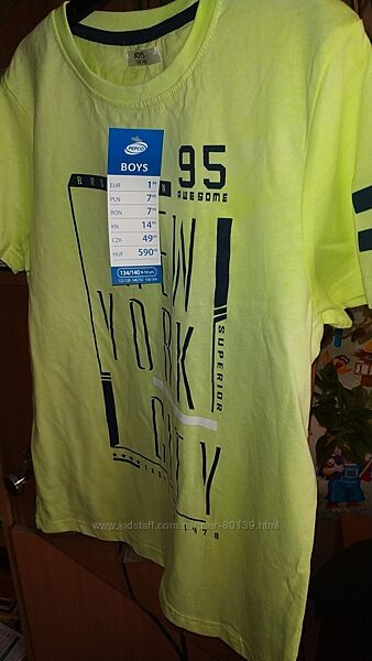 Pepco модная, неон лимон, футболка на мальчика рр 134/140 новая, с бирками