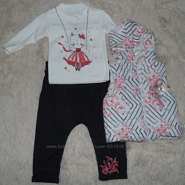 Подробное описание: Комплект трійка для дівчинки з жилеткою, 6 місяців