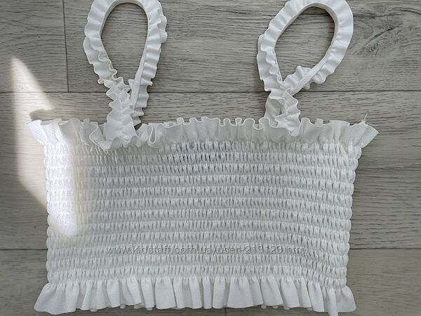 Топ- бандо цвета экрю, или бело-молочный) Размер м-л, резиночки хорошо тянутся. Топ абсолютно новый, бирку я оторвала сразу, но не носила, только примеряла.