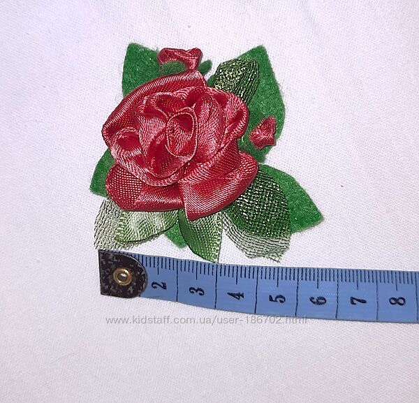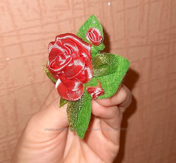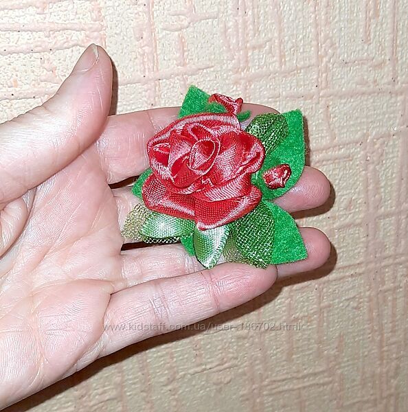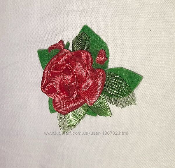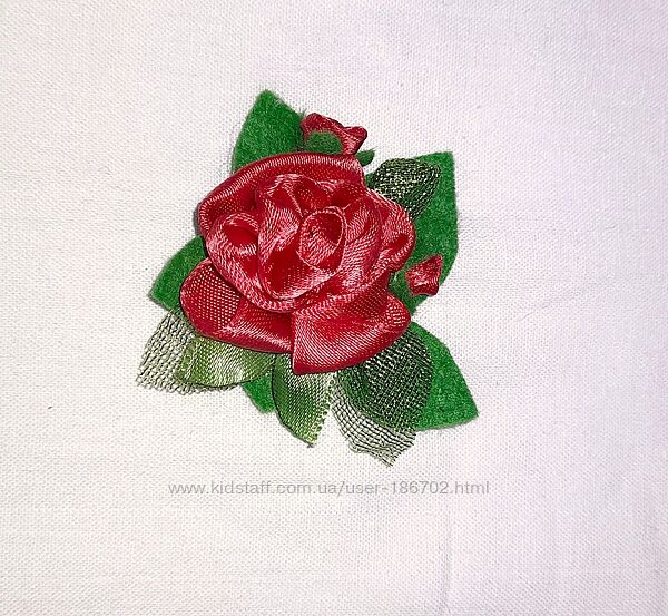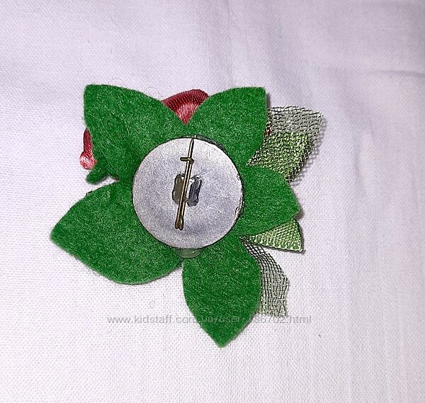 Материал - красная атласная лента, органза, фетр, металлическая основа с застежкой булавкой