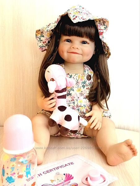 Подробное описание: Лялька Реборн 55 см силіконова Уляна в наборі з соскою, пляшкою та іграшкою