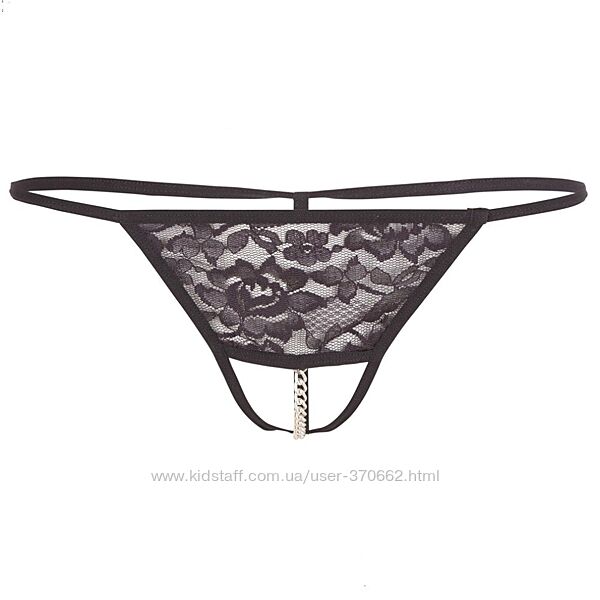 Відверті стрінги без промежини з квіткового мережива із спокусливим металевим ланцюжком на промежині.Його постійне тертя дасть вам незвичайні захоплюючі моменти.
