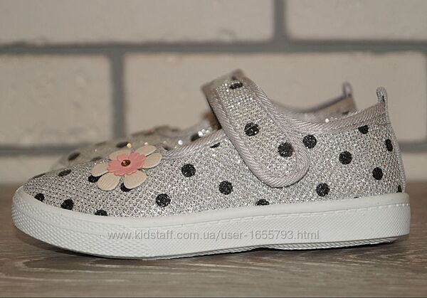 Нарядні сріблясті тапочки на липучці. Зручні, практичні та дуже красиві, добре поєднуються з різним одягом дитячого гардеробу.Матеріал верху - міцний та надійний текстиль, який витримує навантаження від щоденного носіння. Ремінець на липучці дозволить дитині самостійно взутися. Легкі та гнучкі – не обмежують рухів.