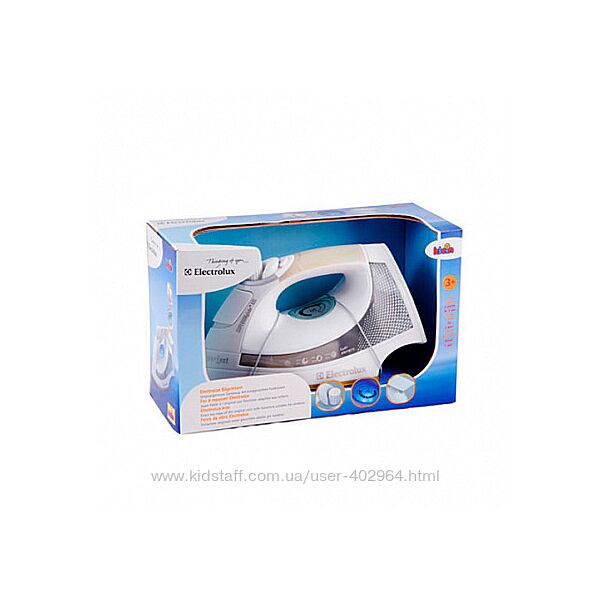 Подробное описание: Детский утюг Electrolux от Klein 6290Детский утюг Electrolux от Klein точная копия настоящего утюга ,понравится каждой маленькой хозяюшке . Игрушка оснащена двумя кнопками: при нажатии на первую утюг подсвечивается приятным синим цветом, а при нажатии на вторую - разбрызгивается вода. Благодаря им у Вашего ребенка будет развиваться мелкая моторика рук. Также этот игрушечный утюг способствует развитию воображения и координации движений.Работает от 2-х батареек «R6» (в комплект не входят).