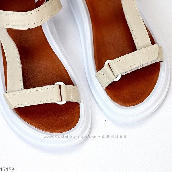 Подробное описание: Жіночі шкіряні бежеві босоніжки на білій платформі