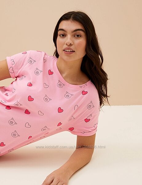 Эта ночная рубашка из богатого хлопком с игривым принтом Percy Pig™ по всей поверхности подарит вам немного веселья перед сном. Эта модель классического кроя выполнена в стиле футболки с короткими рукавами и классическим круглым вырезом. Коллекция M&S: универсальные модели современных форм с уникальными игривыми деталями.Замеры: