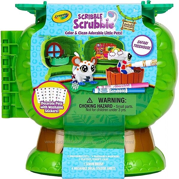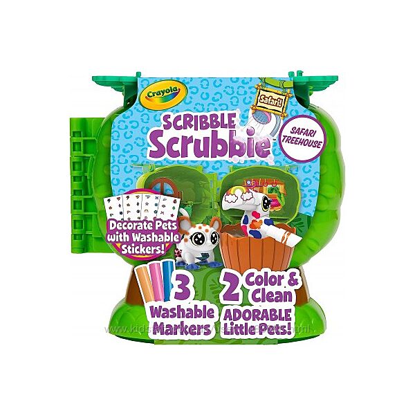 CRAYOLA SCRIBBLE SCRUBBIE SAFARI PETS TREEHOUSE: включає 1 пластиковий ящик для зберігання будиночка на дереві зі складними ручками, 2 нових вихованця Safari, 4 листи з наклейками, 3 маркери, 1 кисть і 1 пластикову ванну. ПОДОРОЖУЙТЕ БЕЗУМНИМ РОЗВАГИ В ТЕМУ САФАРІ: діти можуть прикрасити фігурки тварин джунглів, що додаються, за допомогою миючих маркерів, а потім випрати їх, щоб повторити все це знову, пропонуючи години творчих веселощів.ДОСЛІДЖУЙТЕ І ГРАЙТЕ ВЕСЬ ДЕНЬ: ігровий набір на тему джунглів спонукає дітей вигадувати барвисті творіння, які можна використовувати в дорозі завдяки зручному футляру для перенесення. Додайте кольорові наклейки: у кожному наборі є 4 аркуші розчинних наклейок з 32 кольоровими наклейками, які дозволяють дітям розфарбовувати свої твори Scribble Scrubbie. ПОДАРУНОК ДЛЯ ДІТЕЙ НА ДЕНЬ НАРОДЖЕННЯ: Подаруйте творчий початок Crayola Scribble Scrubbie Safari Pets, іграшці для догляду за домашніми тваринами, яка стане ідеальним подарунком на день народження для хлопчиків та дівчаток. БЕЗПЕЧНО І НЕТОКСИЧНО: ідеально підходить для дітей віком від 3 років. ЗАГАЛЬНЕ ПРИМІТКА. Ми рекомендуємо використовувати для ваших вихованців Scribble Scrubbie лише маркери Crayola Ultra-Clean.