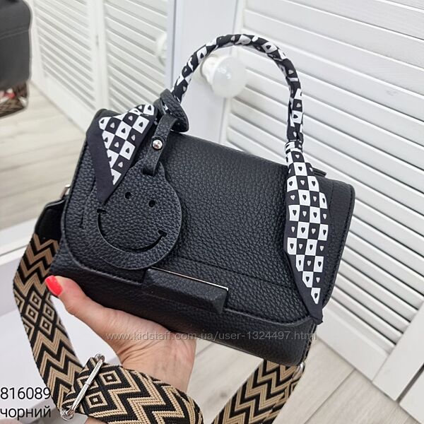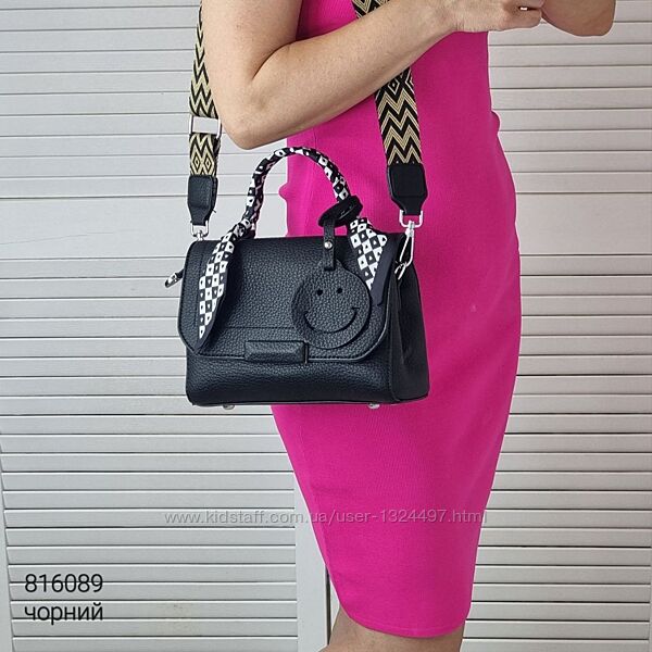 РОЗМІРИ: Ширина по дну - 22 см, висота - 15,5 см, дно - 8 см + ручка і зйомний довгий ремінець ( текстильний )