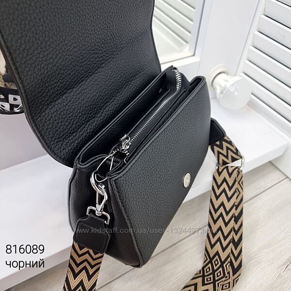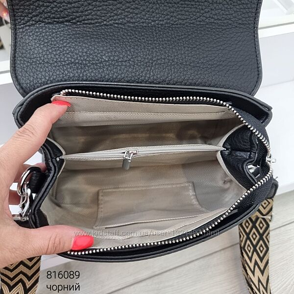 СКЛАД: Два відділи, між ними кишеня перегородка на блискавці. Зверху сумка закривається на блискавку і клапаном на кнопку-магніт. Всередині є відкрита кишеня.