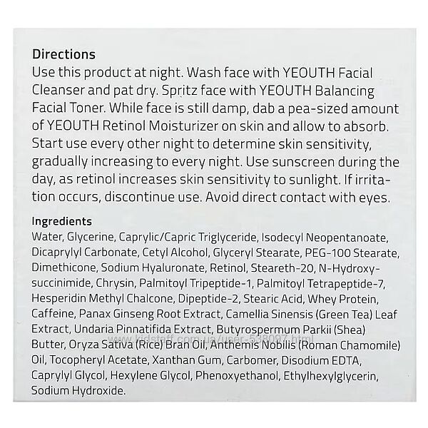 Yeouth Retinol Moisturizer – Увлажняющий крем с ретинолом – крем предназначен для вечернего ухода за кожей с признаками старения.