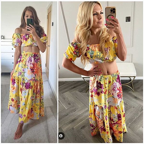Яркий цветочный костюм H&M .Состоит из топа /блузы и длиной блузы.