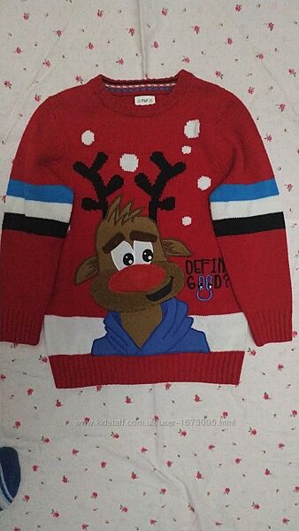 Новогодний свитер с оленем на мальчика 5-6 летНа рост 116 см