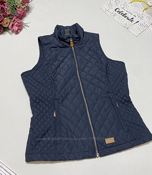 Утеплений стьобаний приталений жилет Trespass Soulmate Padded, синій колір 💙Деталі: Легке набиття. Фасонне стьобання. 2 кишені на блискавці Регульована талія на шнурку із застібкою. Відповідна окантовка в проймі. Шліци на подолі ззаду. Верх: 100 % полиэстер. Склад Поліестер — 100% Стан нової речі. Заміри: Пог 55 см, піт 48 см, ширина внизу 54 см, довжина 62 см