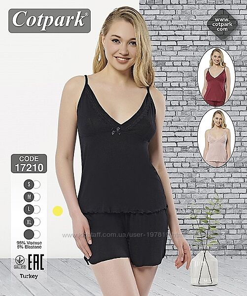 Пижама женская, домашний костюм. Комплект женский майка и шорты ТМ Cotpark. Турция.Піжама жіноча, домашній костюм. Комплект жіночий майка і шорти ТМ Cotpark. Туреччина.