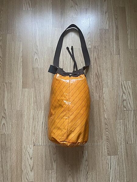 Модна оранжева сумка відомого люксового бренду Lancaster з довгою ручкою. Можна носити як звичайну сумку-шоппер на одному плечі чи як кроссбоді навхрест. Виготовлена із лакованого поліуретану, водонепроникна, гарний варіант пляжної сумки. Фірмові надписи Lancaster прикрашають всю зовнішню поверхню, всередині - текстиль. Зверху стягується на зав’язки.