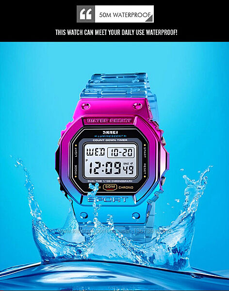 Годинники SKMEI. Оригінал. У роздріб по оптових цінах!Водонепроникність 5 бар (5ATM ), занурення (будь ласка, не натискайте жодну клавішу під водою) . Водонепроникний, Ударостійкий, Підсвічування, Автоматична дата, День тижня, Хронограф, Зворотний відлік, Повний календар, Будильник.