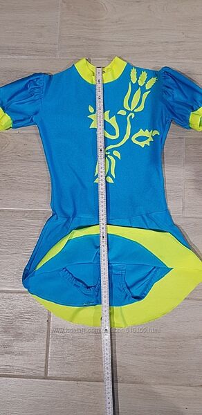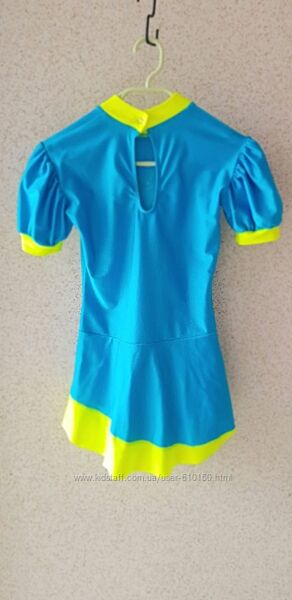 Подробное описание: Купальник платье гимнастический патриотичный голубой с желтым