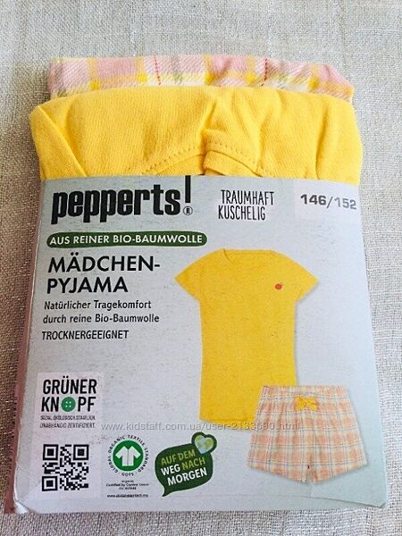 146-152 Pepperts. Німеччина Літня піжама, домашній комплект 146-152. сонячна. футболка і шортики в клітинку100% Бавовна, повномірна