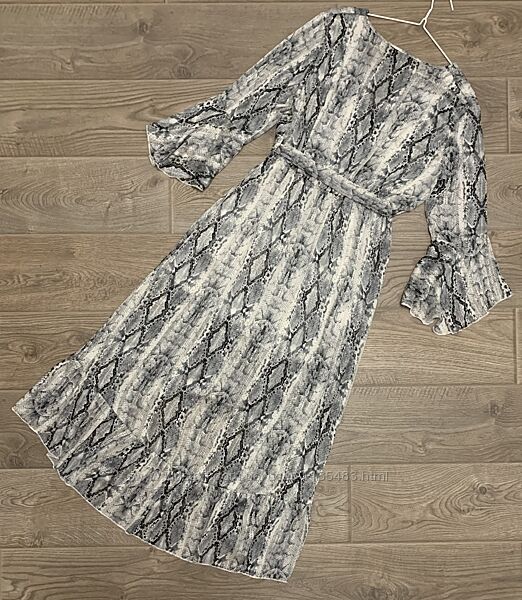 Сукня шифонова New Look р.16/44/2XL (підійде також на р. 14/42/XL.Сукня під пояс (на талії резинка ), на підкладці , ззаду довше, ніж спереду, волани по низу.