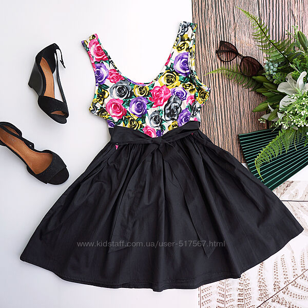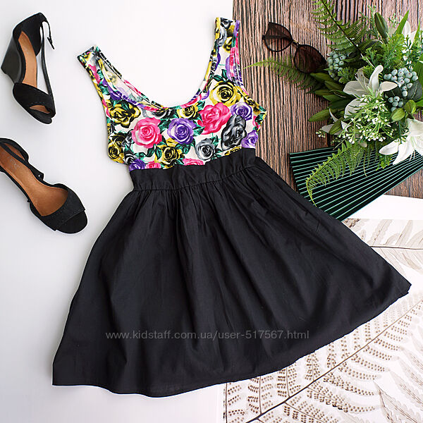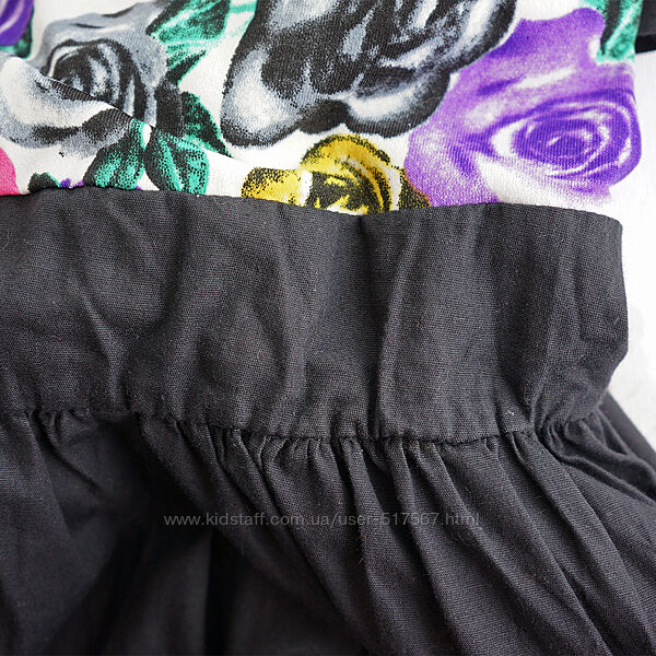 трикотажной ткани в яркие розы, низ пошит из черной хлопчатобумажной