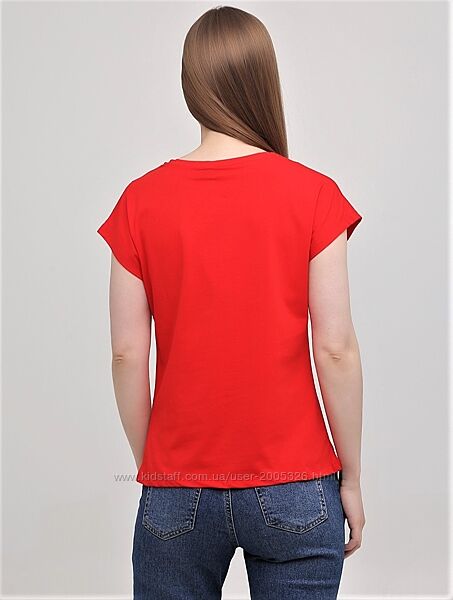 Жіноча футболка Monte Cervino Червона з принтом, написом та декором S-M (44-46)Якісна футболка від італійського бренду Monte Cervino з коротким рукавом-кроп (без шва на плечах) та круглим вирізом горловини. Приталена.