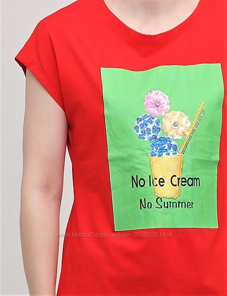 З яскравим принтом та написом, декорована паєтками та біссером.