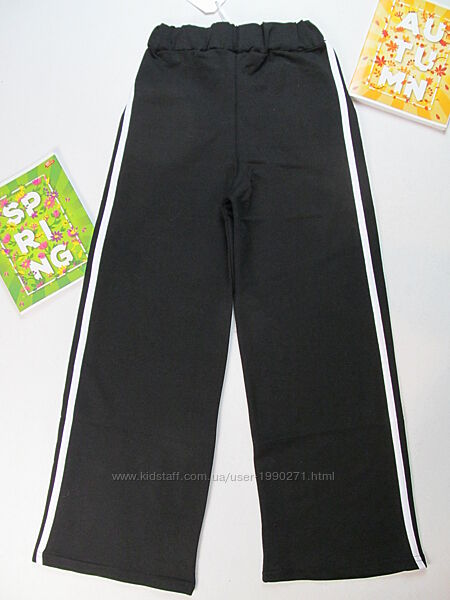 Штани на широкій ризинці,висока посадка. З карманами. По бічному шву два лампаси.