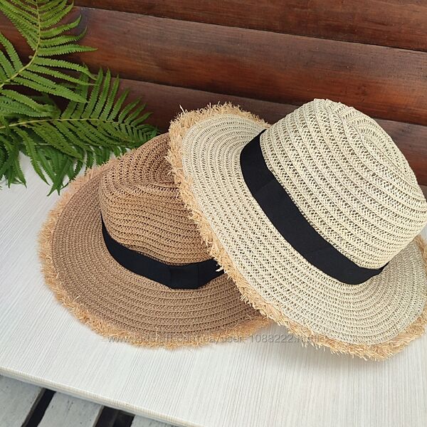 Капелюх солом´яний літній, американка.Ідеальний варіант на літо, легкий та дихаючий.Поля 7 см, висота тулії 11 см.