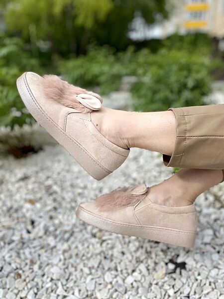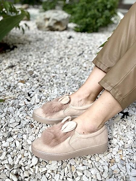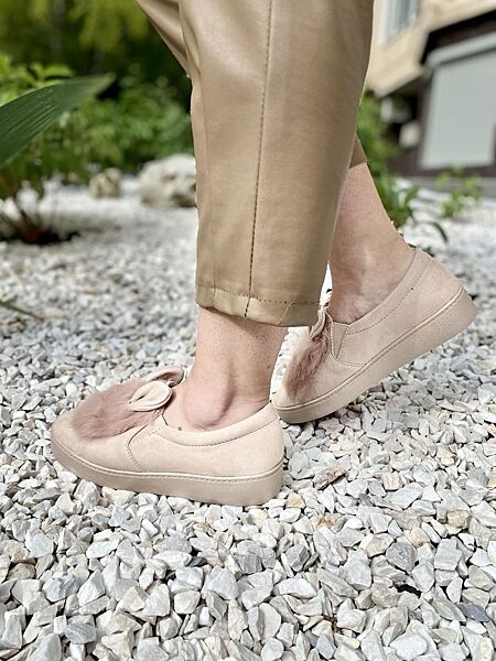Сліпони жіночі A-148 бежеві весна-осінь еко-замш