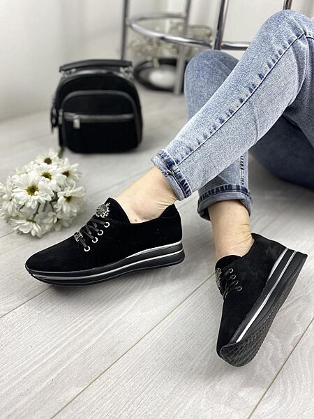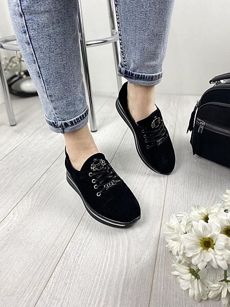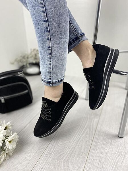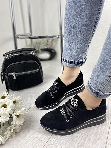 Кросівки жіночі LIYA 105 чорні весна-осінь, замша натуральна 3361