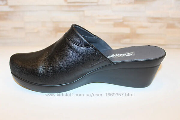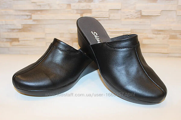 Подробное описание: Шлепанцы сабо женские черные натуральная кожа на танкетке б339-1