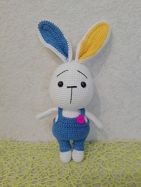 Зайченятко ручної роботи висотою 22см разом з вушками, зв´язане з напівкотонових ниток, наповнювач холофайбер, очі на безпечному кріпленні.Другие объявления продавца